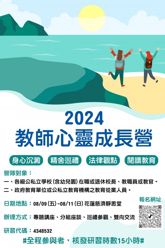 一、財團法人中華民國佛教慈濟慈善事業基金會暨所屬之教師聯誼會與慈濟大學師資培育中心合作辦理【教師心靈成長營—尋覓教育桃花源】營隊活動。
