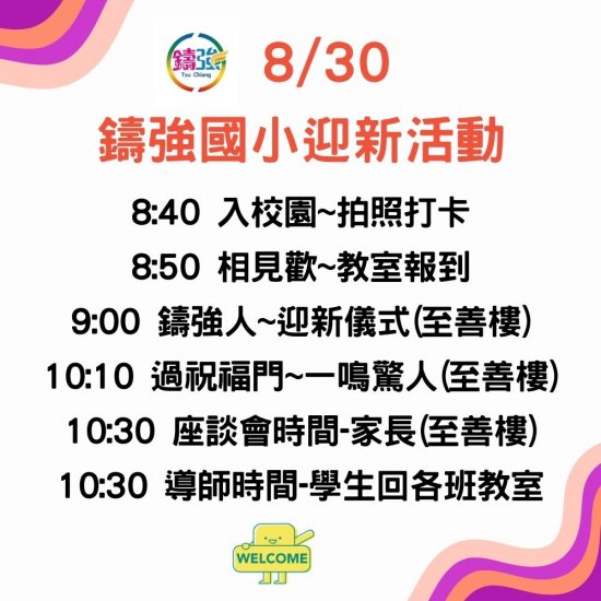 歡迎大家加入鑄強國小這個充滿活力與創意的大家庭!