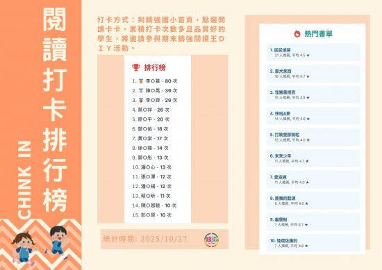 2025鑄強國小閱讀打卡排行榜