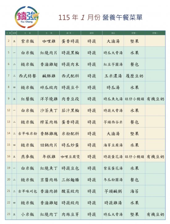 114學年度上學期 1月營養午餐菜單上菜囉~~