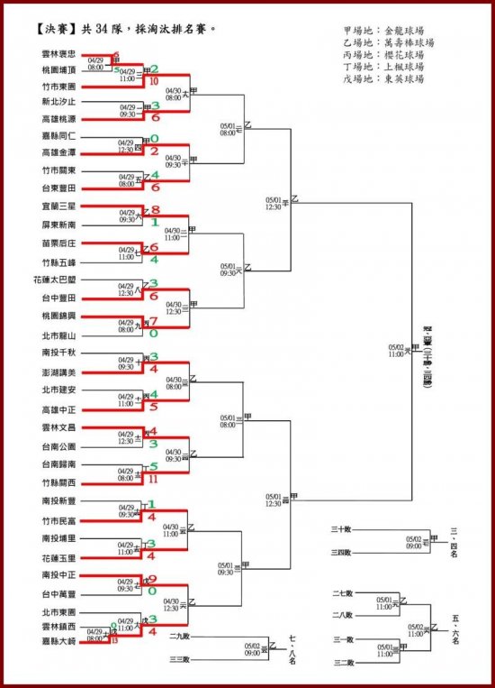 今日(4/29)賽事為花蓮縣太巴塱國小對上台中豐田國小,花蓮縣玉里國小對上南投埔里國小。