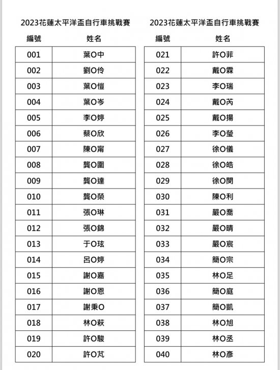 2023 花蓮太平洋盃自行車挑戰賽-親子騎遊組